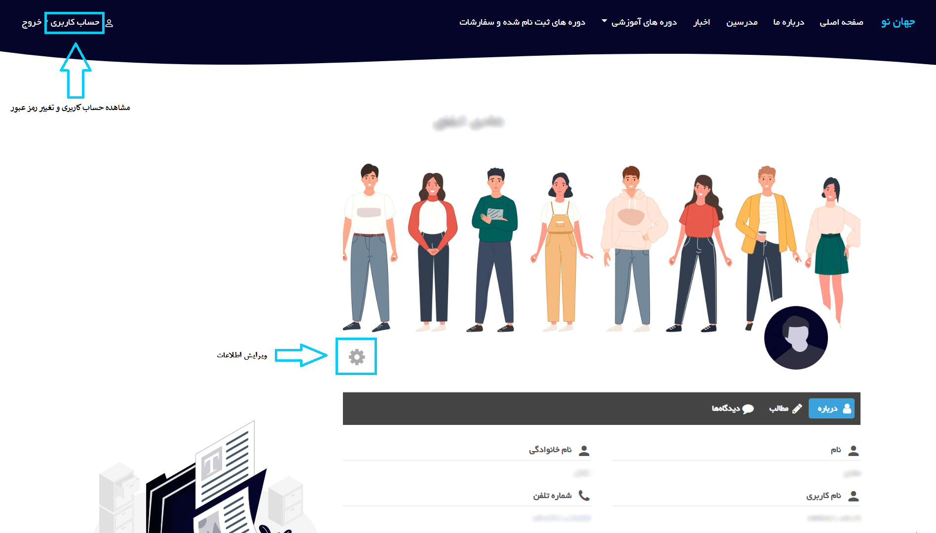 بعد از ثبت نام وارد پروفایل خود می شود.(در صورت نیاز بعدا می توانید اطلاعات خود را از این قسمت ویرایش کنید)