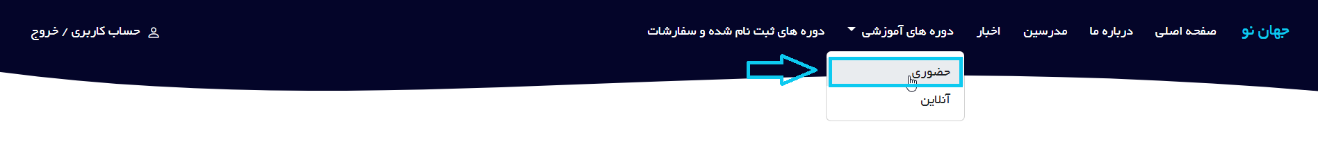روش اول : از طریق گزینه "دوره های آموزشی" در منو بالایی
