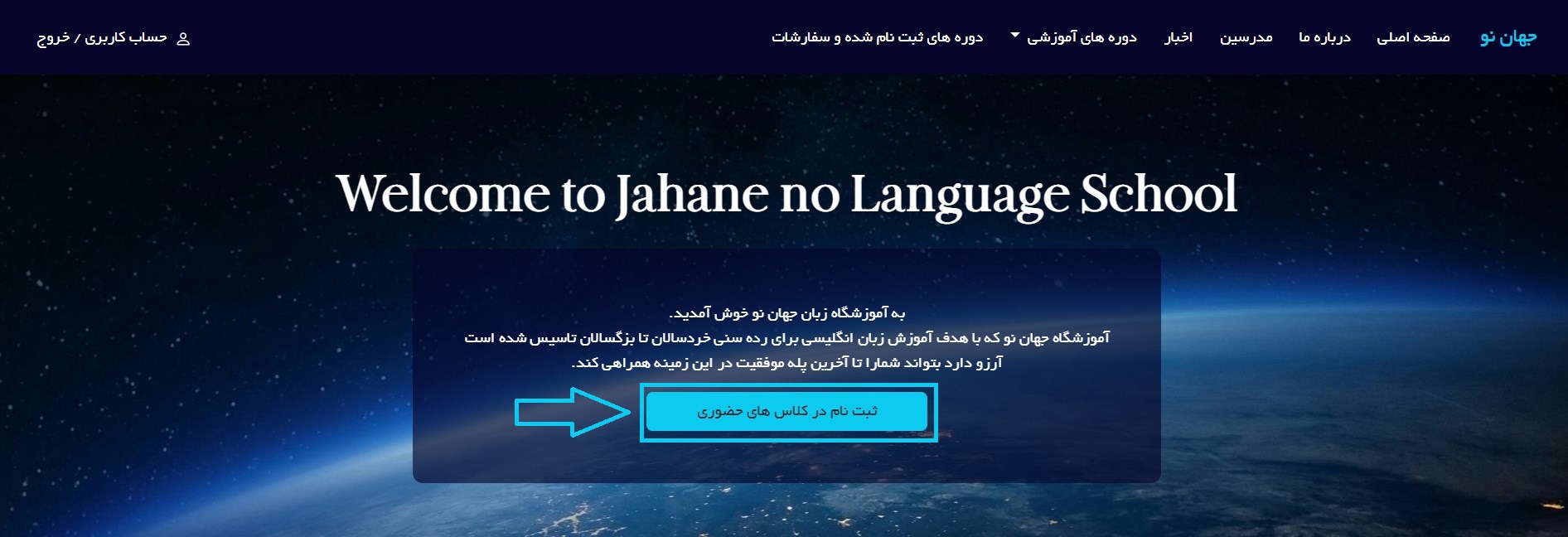 روش دوم : از طریق گزینه "ثبت نام در کلاس های حضوری" در صفحه اصلی