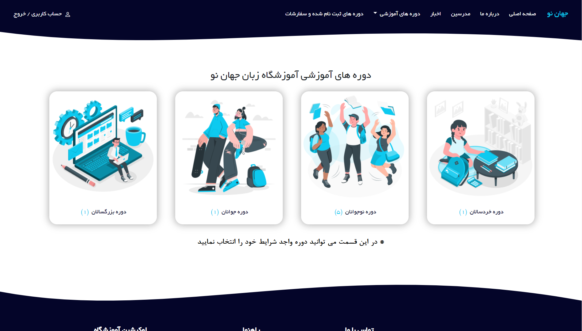 حالا می توانید دسته بندی دوره ها را برای سنین مختلف مشاهده نمایید و با توجه به رده سنی خود دوره سنی را انتخاب نمایید.