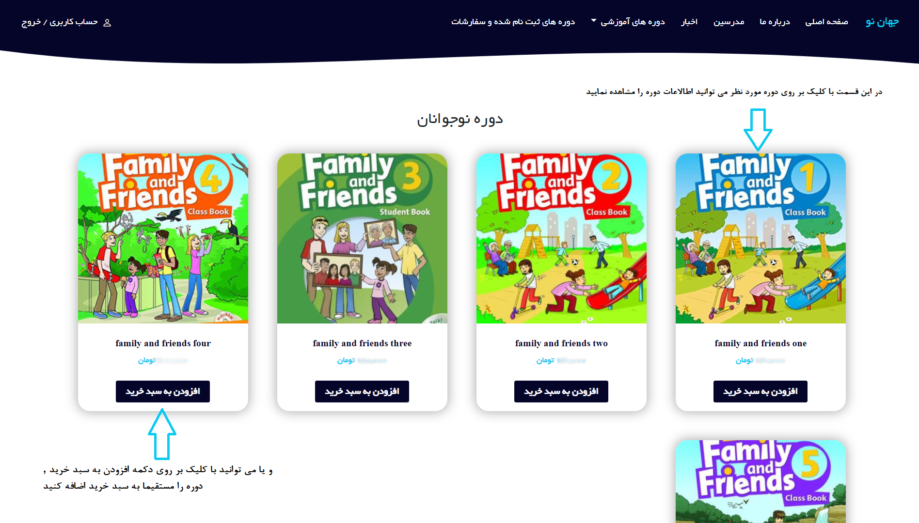 بعد از انتخاب دوره سنی می توانید دوره های درسی مربوط به رده سنی خود را مشاهده کنید.(دقت داشته باشید که بعضی از کتاب ها در چند ترم تدریس می شوند پس در انتخاب ترم دقت نمایید)