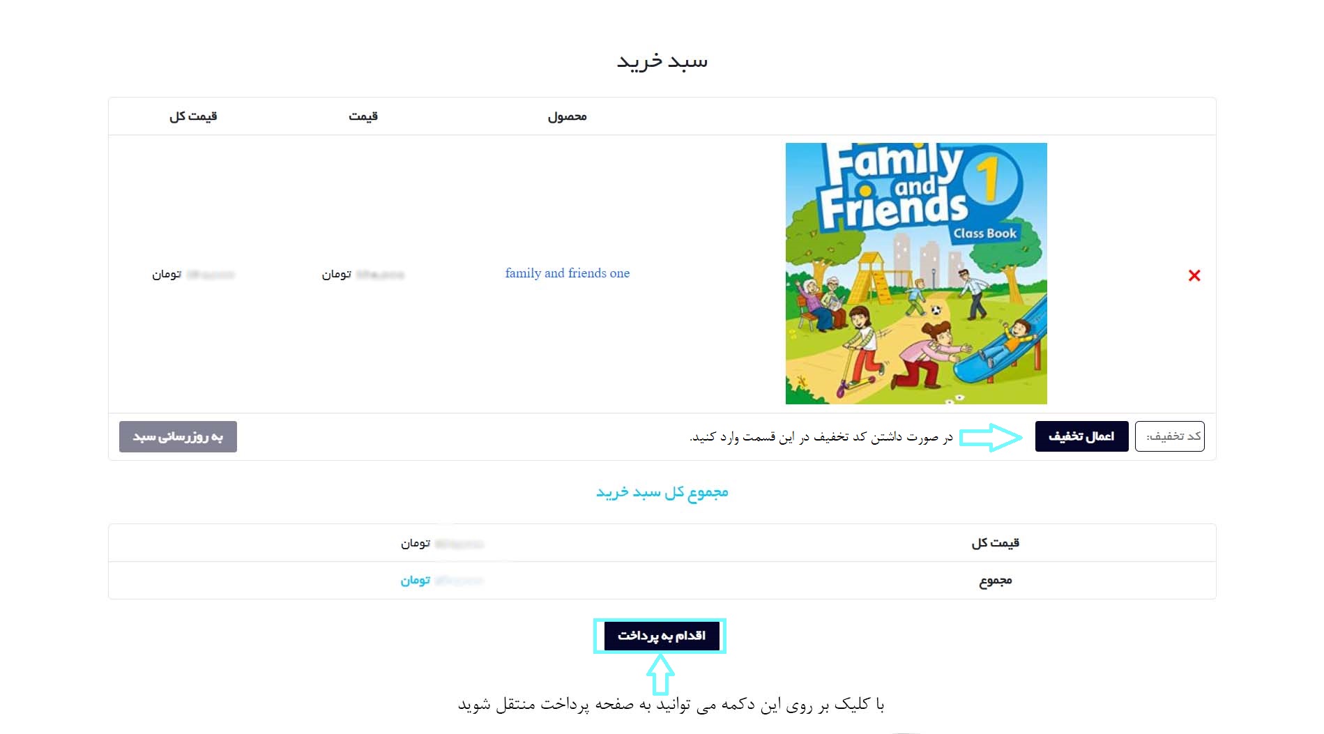 حالا وارد سبد خرید می شوید.با کلیک بر روی دکمه اقدام به پرداخت وارد صفحه پرداخت خواهید شد.